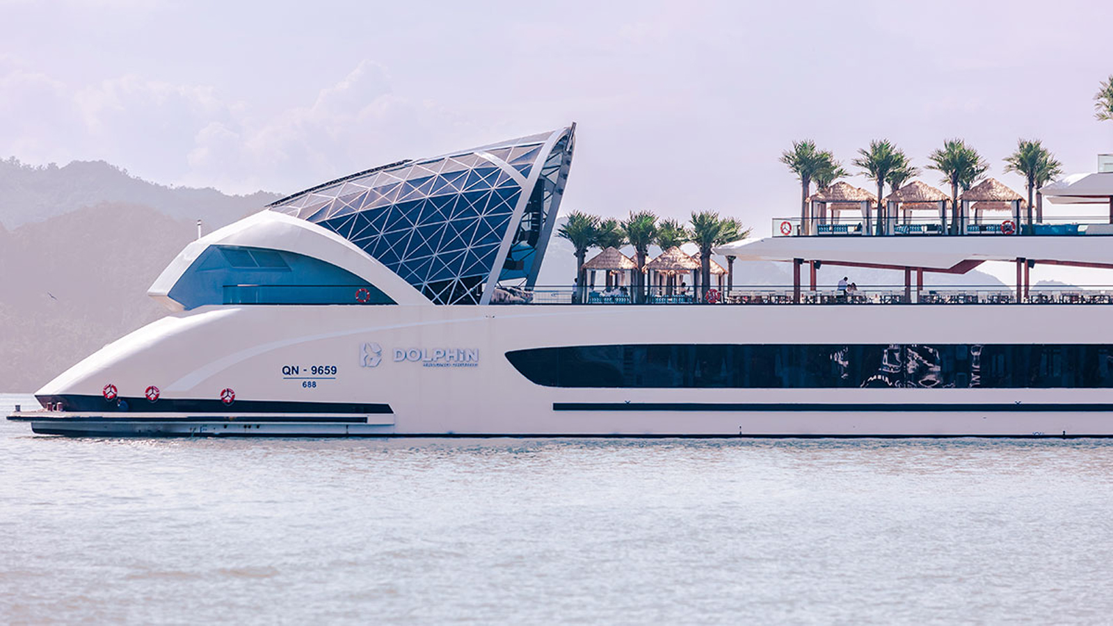 Du thuyền Dolphin được ví như một "siêu tổ hợp giải trí" nổi trên vịnh với vẻ đẹp hiện đại, phóng khoáng và thượng lưu chuẩn 6 sao: