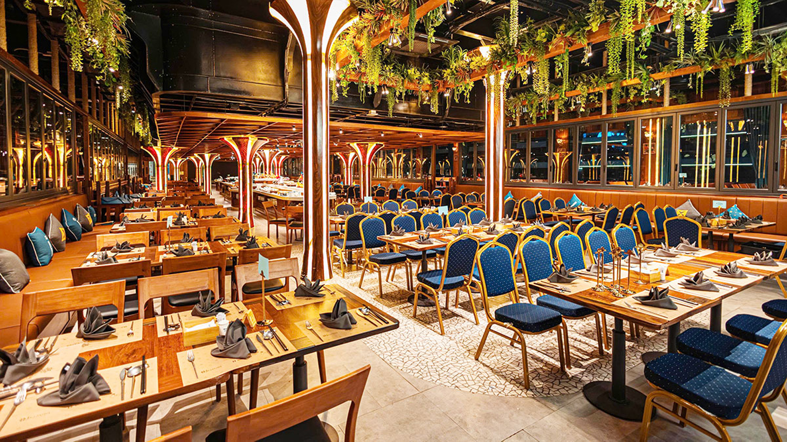 Nhà hàng: Hệ thống điều hòa mát lạnh, sân khấu biểu diễn nhạc sống (Live music).