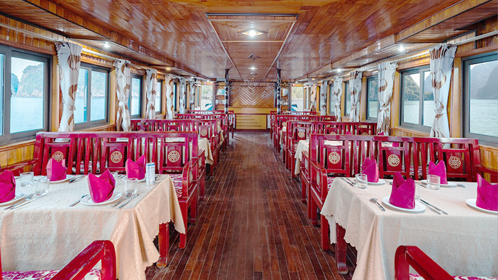 - Tàu Huy Lộc 48 khách là tàu gỗ 2 tầng 48 khách khá phổ biến trong dòng tàu từ xưa đến nay tại Hạ Long, với sức chứa tối đa 48 khách (Cả trẻ em) rất phù hợp cho du khách thuê tàu tham quan Vịnh Hạ Long bởi tính linh động, nhỏ gọn rất phù hợp để đi thăm Vịnh Hạ Long ngay cả khi thủy triều xuống. Chi phí đi Tàu Huy Lộc tiết kiệm hơn rất nhiều so với các tàu cỡ lớn và du thuyền Vịnh Hạ Long 5 sao.