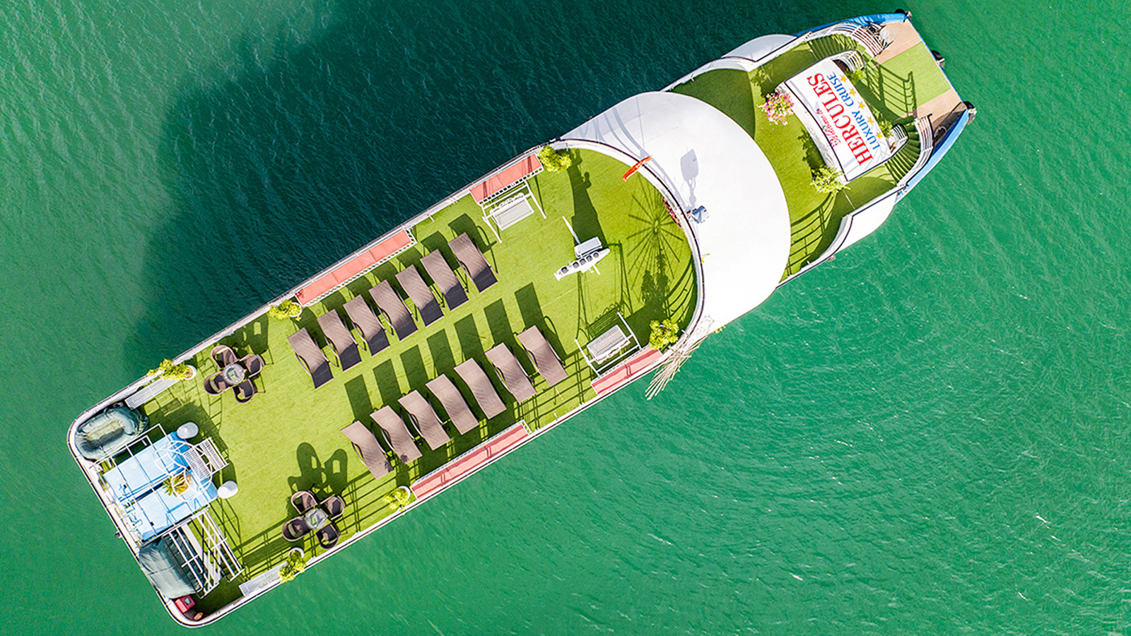Du thuyền Hercules Luxury là một trong những du thuyền tham quan Vịnh Hạ Long trong ngày có sức chứa 99 khách, hoạt động từ tháng 5 năm 2023 với trang thiết bị hiện đại, nội thất sang trọng.Hercules Luxury Cruise có chiều dài 38m, rộng 8,5m là một trong những du thuyền 99 khách rất đẹp trong cùng phân khúc. Hercules Luxury Cruise có 2 boong tắm nắng và ngắm cảnh được bố trí trên tầng 2 và 3 tầng: