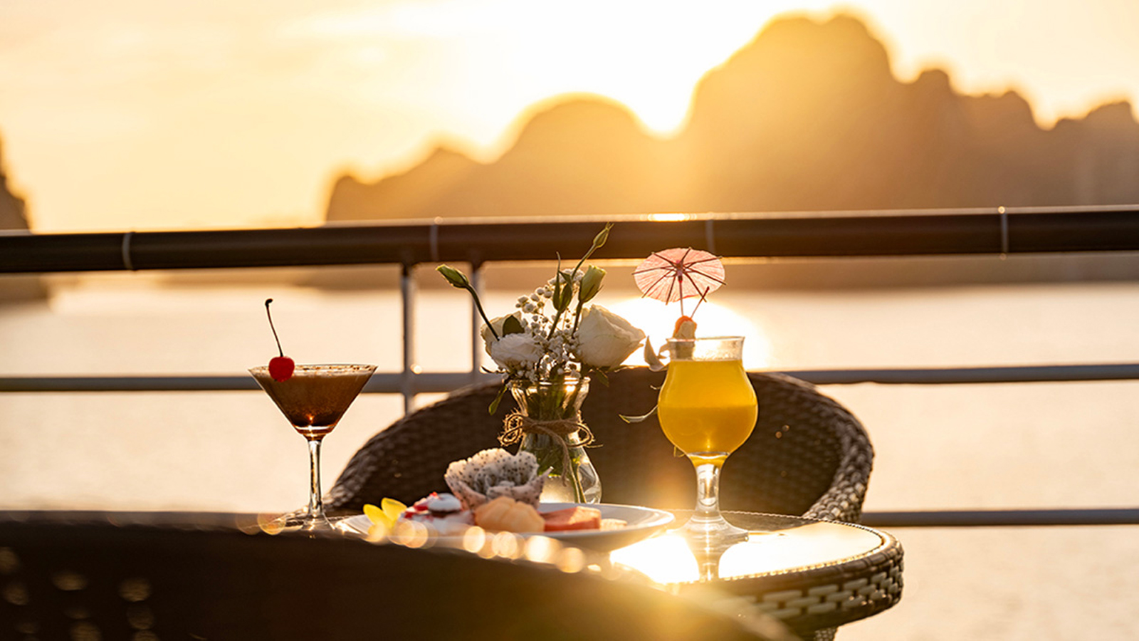 16:30 - 18:00: Sau khi kết thúc hoạt động tham quan Đảo TiTop Quý khách quay lại Du thuyền Hercules để trở về bến, Quý khách sẽ được phục vụ trà chiều dưới ánh hoàng hôn, gồm các đồ ăn nhẹ như bánh ngọt, trái cây,…