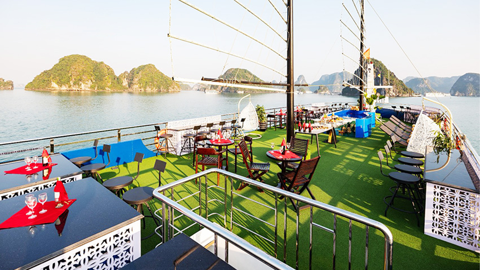 Du thuyền Jewels of the Bay là một trong những du thuyền thăm Vịnh Hạ Long trong ngày có sức chứa 99 khách, hoạt động từ tháng 4 năm 2024 tại Cảng tàu khách quốc tế Hạ Long (Cảng Sun world), với trang thiết bị hiện đại, nội thất sang trọng, có bể sục Jacuzzi bốn mùa trên tầng 3.2. Lịch trình thăm Vịnh Hạ Long 6 tiếng của Du thuyền Jewels of the Bay