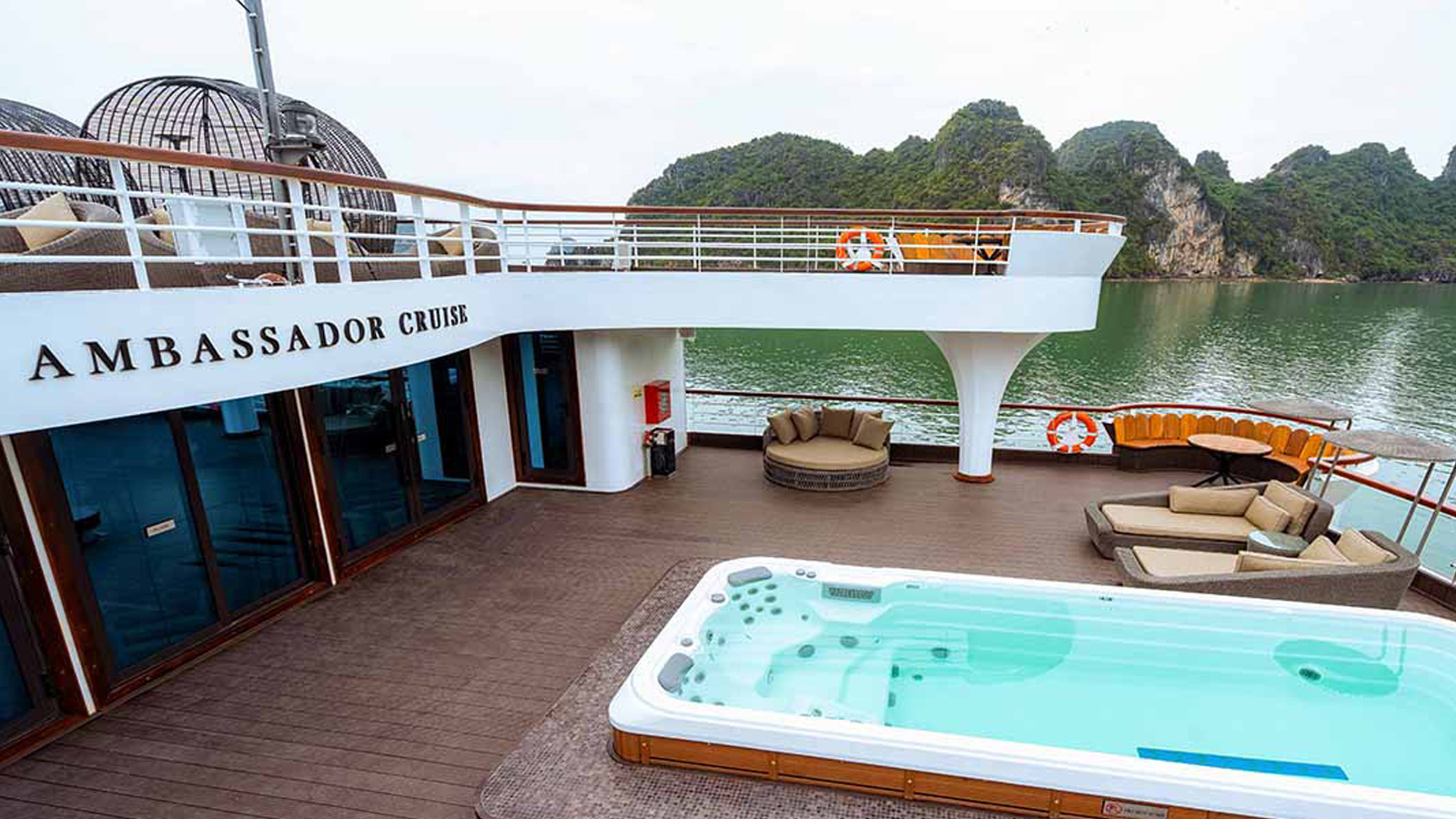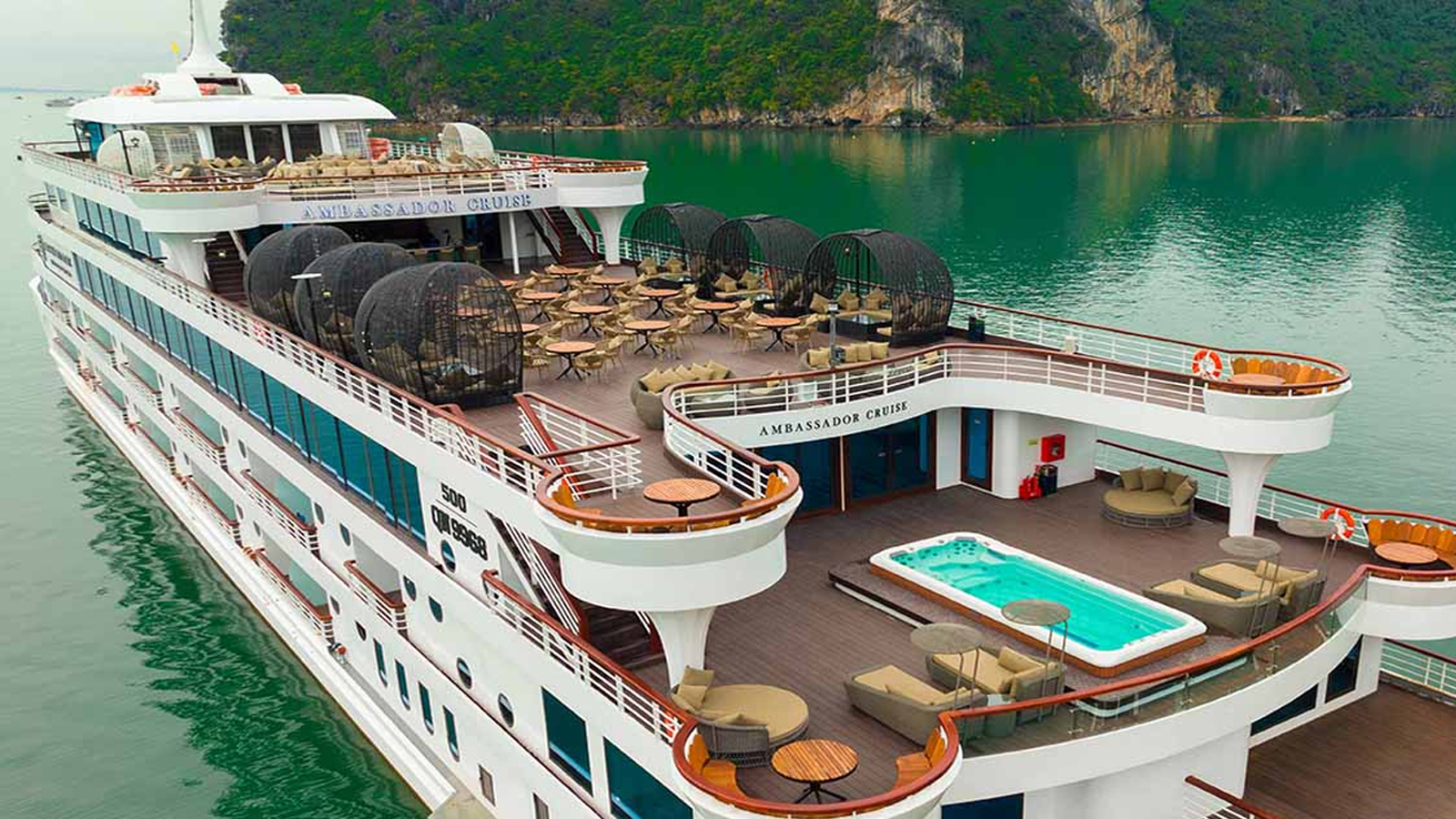 Du thuyền Ambassador Hạ Long là một trong những du thuyền 5 sao tham quan Vịnh Hạ Long trong ngày, lớn nhất trên Vịnh Hạ Long hiện nay, hoạt động tại Cảng tàu khách quốc tế Hạ Long (Cảng Sun world), có sức chứa lên đến 500 khách, được thiết kế 5 tầng với trang thiết bị hiện đại, nội thất sang trọng với rất nhiều góc check in sống ảo như: cầu kính trước mũi du thuyền, sân ngắm cảnh từ tầng 1 đến tầng 5, bể sục Juccuzi ngoài trời...