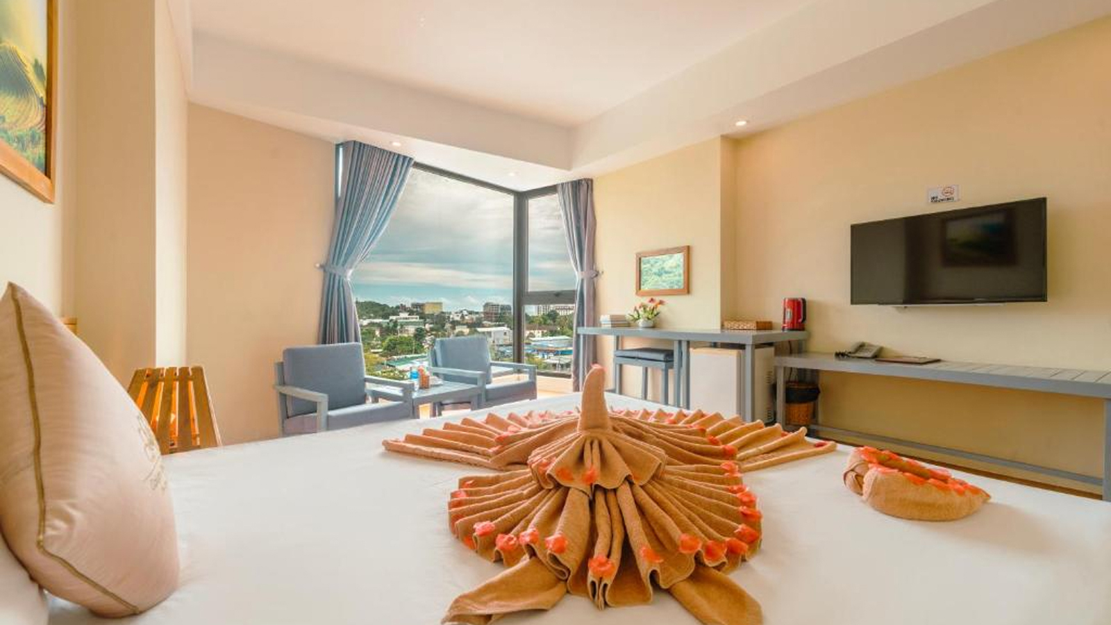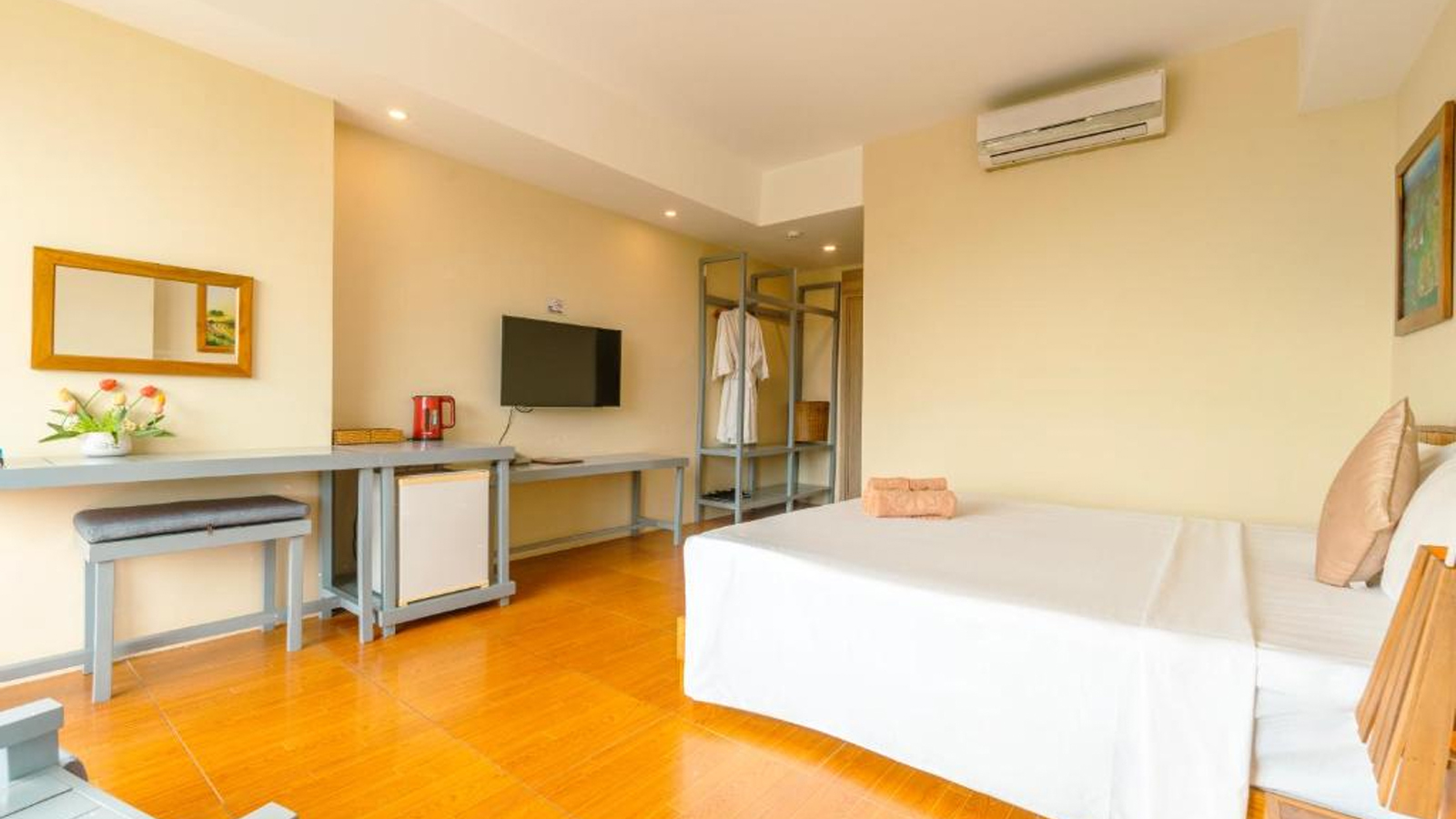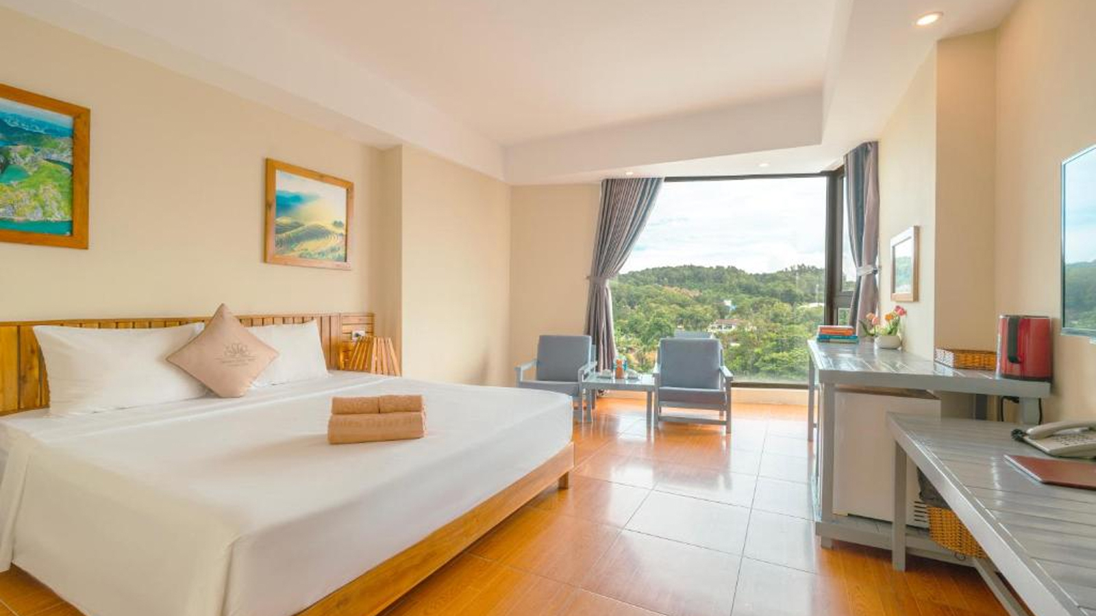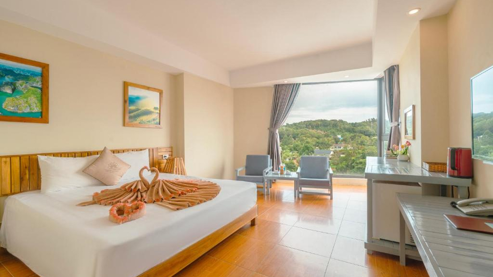 Các căn ở khách sạn được trang bị ấm đun nước. Các phòng đều đi kèm với TV màn hình phẳng, ngoài ra một số phòng tại Golden Daisy Hotel Phu Quoc có view biển. Tại chỗ nghỉ, các phòng được thiết kế có ga trải giường và khăn tắm.