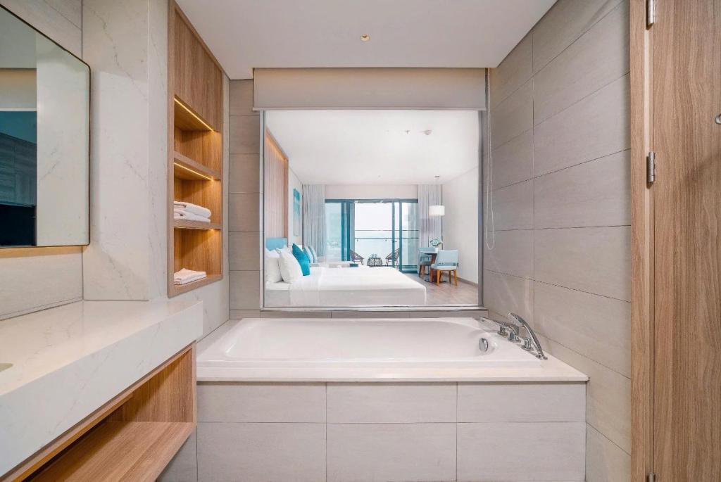 OceanView Alacarte Hạ Long có khu vườn, khu vực bãi biển riêng, sân hiên và nhà hàng ở Hạ Long. Ngoài Wi-Fi miễn phí, khách sạn 5 sao này còn cung cấp câu lạc bộ trẻ em và dịch vụ phòng. Du khách có thể thưởng thức đồ uống tại quầy bar. Khách sạn sẽ cung cấp cho khách các phòng có điều hòa, bàn làm việc, ấm đun nước, tủ lạnh, minibar, két an toàn, TV màn hình phẳng, ban công, phòng tắm riêng và vòi xịt/chậu rửa vệ sinh. Tất cả các căn có tủ quần áo. Chỗ nghỉ có các lựa chọn thực đơn buffet, kiểu lục địa hoặc kiểu Ý cho bữa sáng. Thành thạo tiếng Anh và tiếng Việt, đội ngũ nhân viên luôn túc trực để hỗ trợ khách tại lễ tân. OceanView Alacarte Hạ Long cách Bãi biển Marina Bay chỉ vài bước chân và Cáp treo Nữ Hoàng 6.1 km.