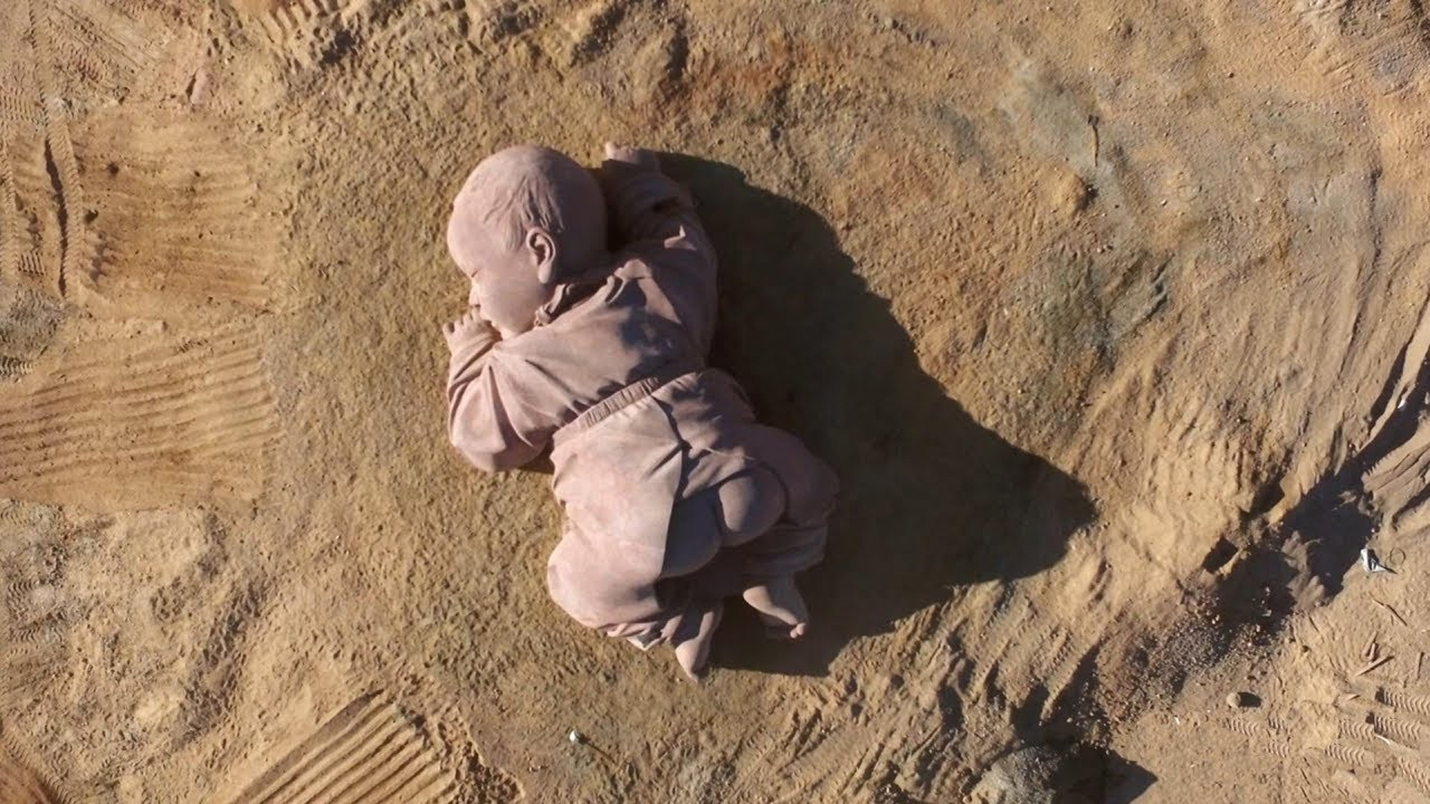 Sau bữa sáng, Xe và HDV đưa đoàn đi Đôn Hoàng. Trên đường đoàn ghé thăm Đại Địa Chi Tử - Đứa con của Trái Đất – Tác phẩm là hình ảnh một em bé khổng lồ đang nằm sấp, ngủ ngon lành giữa sa mạc mênh mông với chiều dài 15m, cao 4.3m, rộng 9m. Nhìn từ trên cao tựa như đứa con của đất mẹ, càng đến gần càng cảm thấy chấn động! Giữa vùng đất hoang vu rộng lớn, một em bé với thần thái an nhiên đang nằm úp mặt, tựa như đang yên giấc trong lòng mẹ.