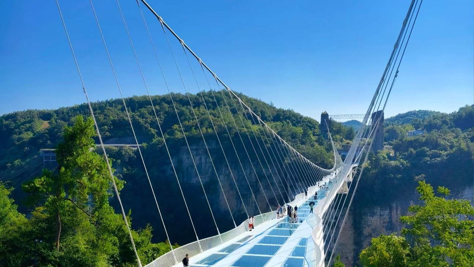 Cầu kính Trương Gia Giới (điểm thăm quan tự túc): hay còn có tên gọi khác là cầu kính Thiên Vân Độ, cầu kính Đại Hiệp Cốc - cầu kính nổi tiếng dài nhất và cao nhất thế giới, được CNN bình chọn là 1 trong “11 cây cầu ngoạn mục nhất thế giới (chi phí tự túc, bao gồm vé đi cầu kính và tham gia các trò chơi trong khu Đại Hiệp cốc như trượt zipline, trượt ống, thang máy từ đỉnh núi…) tại Vũ Lăng Nguyên.