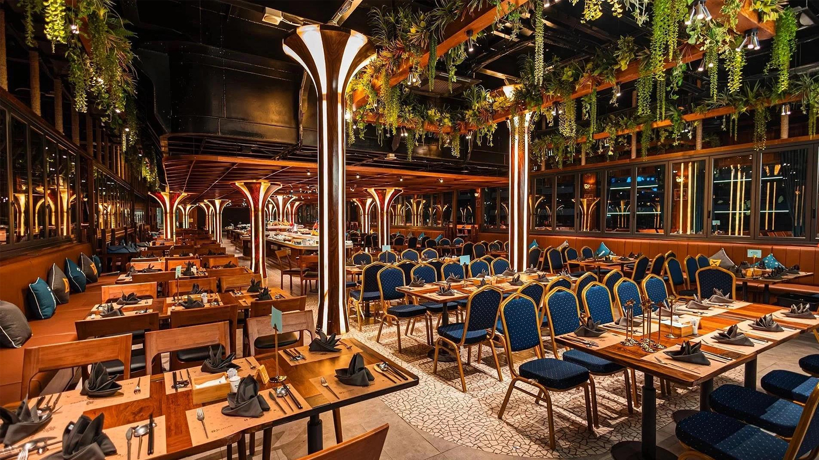 Điểm nhấn đắt giá chính là trải nghiệm du thuyền Dolphin Dinner Cruise – nơi bạn vừa thưởng thức buffet sang trọng, vừa thả mình giữa khung cảnh Hạ Long về đêm lung linh ánh đèn. Âm nhạc live nhẹ nhàng, không gian mở thoáng đãng, tạo nên một buổi tối vừa lãng mạn vừa “chill đúng nghĩa”.